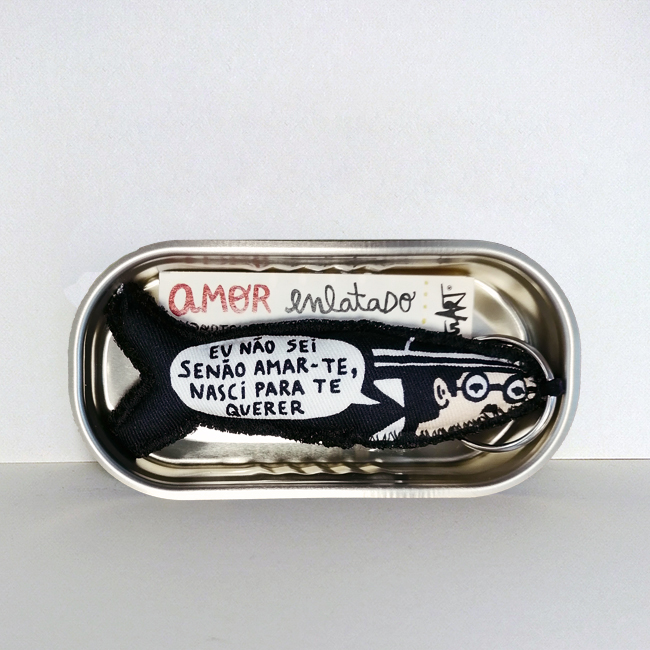 AMOR ENLATADO FERNANDO PESSOA 9,50 € Desconto de %. IVA incluído. Partilhar Modelo amar-te homem sonhar alma Comprar Contactar 4 unidades em stock | SKU: AFP0011 Porta-chaves em tecido Este modelo tem 4 variantes Edição Limitada. Tamanho > aproximadamente 9 cm. Handmade in Portugal. Designed by illustrART® Tags São Valentimdia dos NamoradosFernando Pessoapessoasardinhaamor enlatadoporta chaves