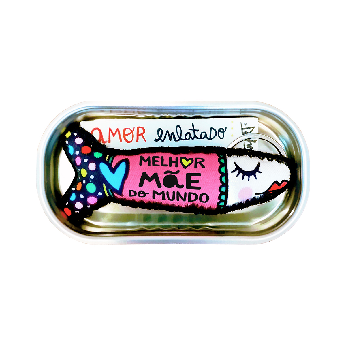 • Lata metálica com desenho de peixe e texto MELHOR MÃE DO MUNDO