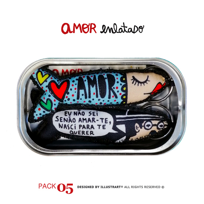 AMOR ENLATADO PACK 05 16,50 € Desconto de %. IVA incluído. Partilhar Comprar Contactar SKU: AEPACK05 Amor Enlatado PACK 05 :: FERNANDO PESSOA (Amar-te) + AMOR AZUL Lata reciclada com 2 porta-chaves em tecido Tamanho > aproximadamente 9 cm. Edição Limitada. Handmade in Portugal. Designed by illustrART® Tags São Valentimdia dos NamoradosFernando Pessoapessoasardinhaporta chavesamor