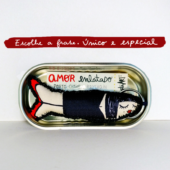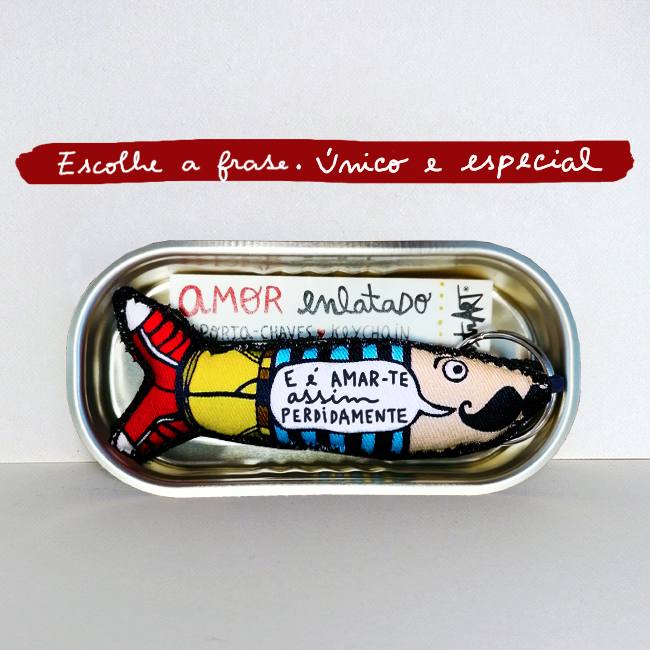 Amor enlatado - personalizado 13,00 € Desconto de %. IVA incluído. Partilhar MODELO masculino feminino PERSONALIZAÇÃO PORTA-CHAVES Comprar Contactar SKU: AEP0011 Amor Enlatado LATA COM 1 SARDINHA PERSONALIZADA As imagens do produto são apenas exemplos Esta vertente permite selecionar o tipo de sardinha que pretende (feminino ou masculino) e criar a sua própria mensagem tornando o presente mais especial. Atenção que o texto não deve ser demasiado extenso. INDIQUE NA CAIXA DE TEXTO ACIMA: - A frase para colocar no porta-chaves Lata com 1 porta-chaves em tecido Tamanho > aproximadamente 9 cm. Edição Limitada. Handmade in Portugal. Designed by illustrART® Tags amor enlatadoamorpersonalizadoporta chavessardinha