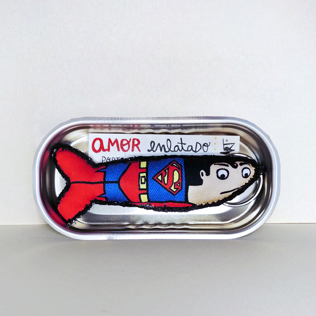 AMOR ENLATADO SUPER HOMEM 9,50 € Desconto de %. IVA incluído. Partilhar Comprar Contactar SKU: AE0032 Porta-chaves em tecido.Edição Limitada. Tamanho > aproximadamente 9 cm.Handmade in Portugal.Designed by illustrART® Tags sardinhaamor enlatadoporta chavesSUPER HOMEMamor Características