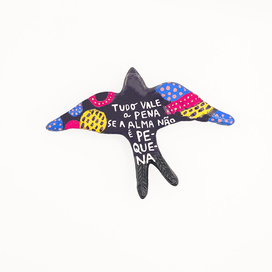 Andorinha tudo vale a pena [ Fernando Pessoa ] 24,50 € Desconto de %. IVA incluído. Partilhar O produto encontra-se sem stock. Andorinha em cerâmica feita e pintada à mão. Com citação de Fernando Pessoa Made in Portugal. Peça única. Tamanho aproximado: 10x14 cm Tags andorinhapeça únicapintado à mãocerâmicamade in PortugalalmaFernando Pessoaescritores portuguesesliteratura portuguesa