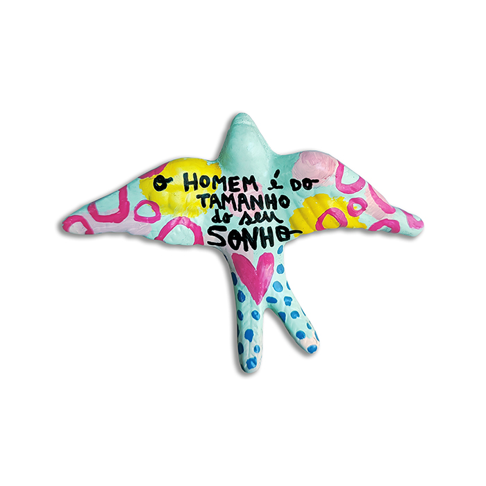 Andorinha "sonho" [Fernando Pessoa] 24,50 € Desconto de %. IVA incluído. Partilhar O produto encontra-se sem stock. Andorinha em cerâmica feita e pintada à mão, com citação de Fernando Pessoa Tamanho aproximado: 10x14 cm Made in Portugal. Peças únicas. Tags andorinhacerâmicapintado à mãopeça únicamade in PortugalamorFernando Pessoaescritores portuguesesliteratura portuguesa