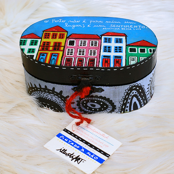 CAIXA " O PORTO É UM SENTIMENTO" 35,00 € Desconto de %. IVA incluído. Partilhar O produto encontra-se sem stock. Caixa de madeira pintada à mão. Peças únicas Forrada a papel de parede vintage e veludo. Com frase de Agustina Bessa Luís Made in Portugal Cerca de 14 cm de largura. Tags PROMO02
