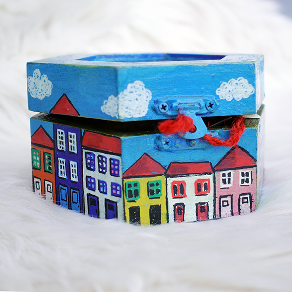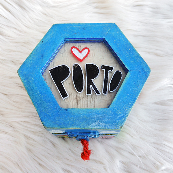 CAIXA PORTO 30,00 € Desconto de %. IVA incluído. Partilhar O produto encontra-se sem stock. Caixa de madeira pintada à mão. Peças únicas Forrada a papel de parede vintage e veludo. Made in Portugal Cerca de 10 cm de largura. Tags PROMO02 Características