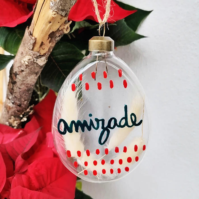 Ornamento natal "amizade" 7,50 € Desconto de %. IVA incluído. Partilhar O produto encontra-se sem stock. Ornamento em vidro com planta seca. Pintado à mão. Cada peça é única e diferente. Para pendurar na árvore de Natal, grinalda ou lareira. DimensõesComprimento x largura x altura. : 8,0 x 3,0 x 12,0 cm Tags nataldecoraçãodecoração de natalvidropintado à mãopeça únicaamizadePROMO03 Características