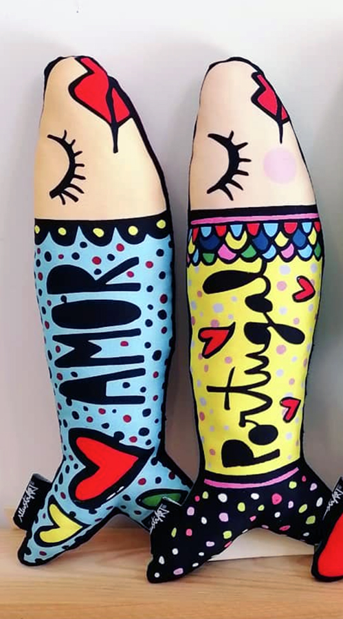PACK 2 almofadas sardinha 29,00 € Desconto de %. IVA incluído. Partilhar O produto encontra-se sem stock. Pack de 2 almofadas formato sardinha. Amor + Portugal DIMENSÕES :: 32 cm comprimento100% algodão Made in Portugal. Designed by illustrART. All rights reserved