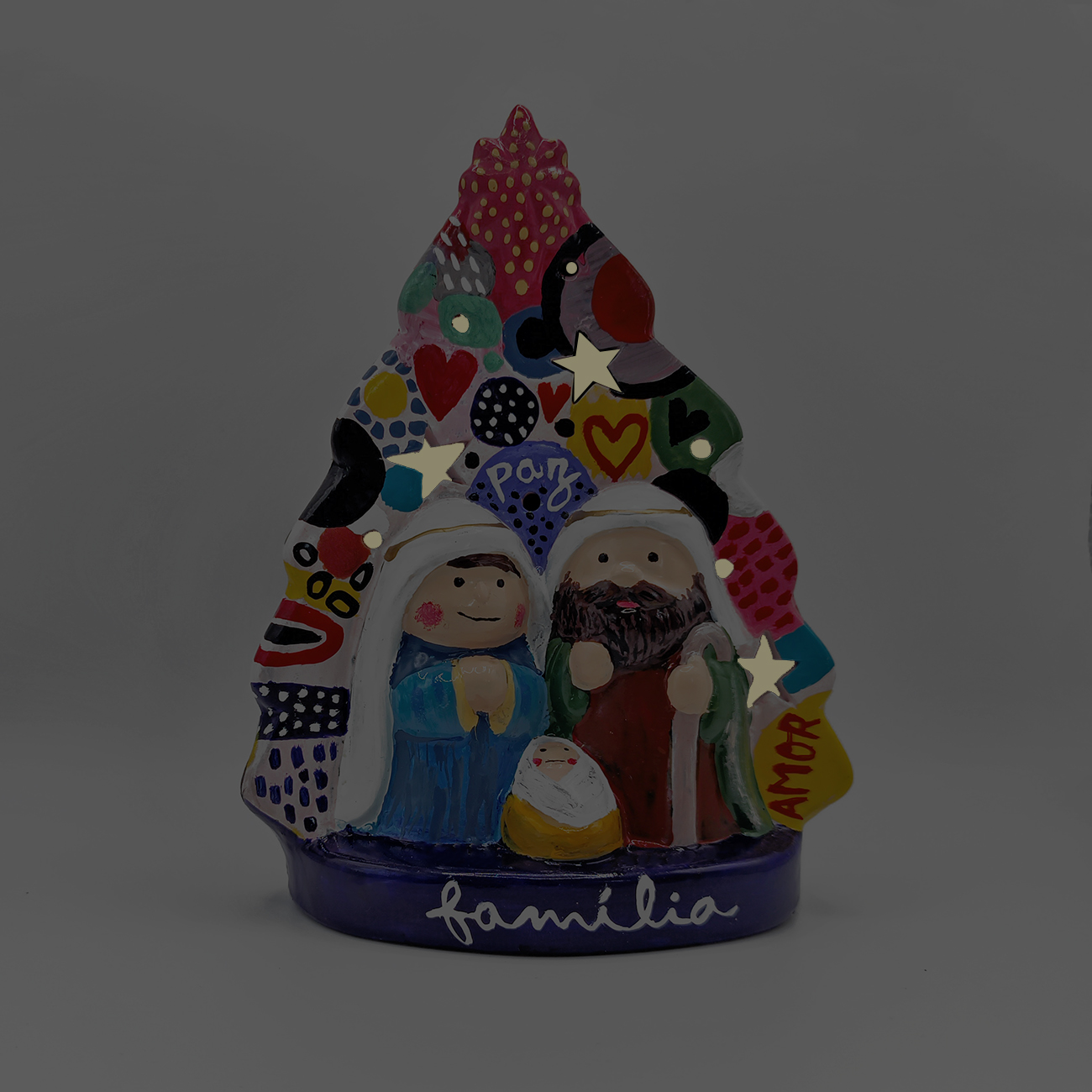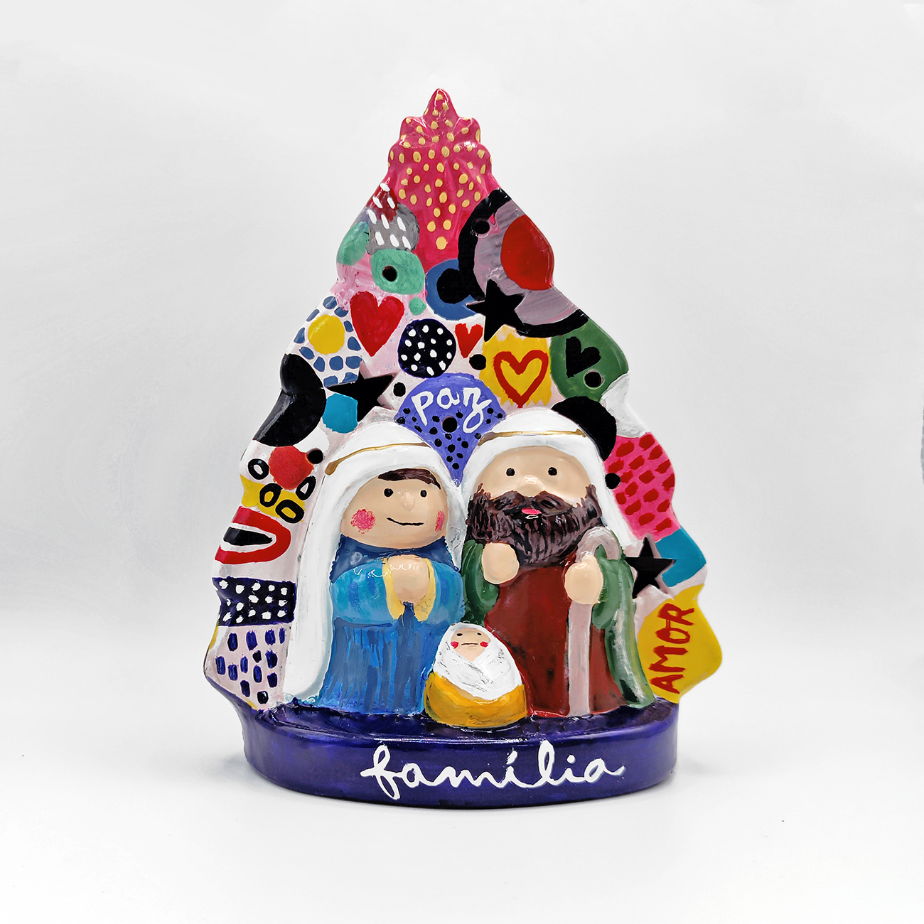 Presépio Família 02 [ pintado à mão ] 58,50 € Desconto de %. IVA incluído. Partilhar O produto encontra-se sem stock. Presépio em cerâmica pintado à mão PEÇA ÚNICA E ASSINADA. Iluminação LED interior. Pilhas incluídas. Medidas aproximadas 12,3 x 8,0 x 16,0 cm MADE IN PORTUGAL Tags presépionatalfamíliaamorpazMariaJoséMenino Jesuspeça únicapintado à mão Características