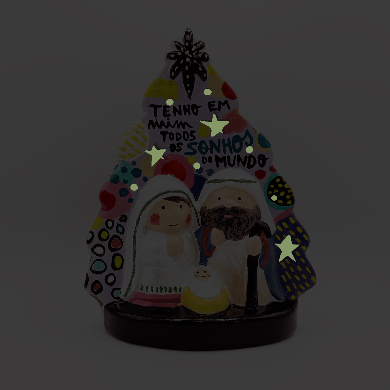 Presépio Todos os sonhos [ pintado à mão ] 58,50 € Desconto de %. IVA incluído. Partilhar O produto encontra-se sem stock. Presépio em cerâmica pintado à mão PEÇA ÚNICA E ASSINADA. Citação de Fernando Pessoa. Iluminação LED interior. Pilhas incluídas. Medidas aproximadas 12,3 x 8,0 x 16,0 cm MADE IN PORTUGAL Tags presépionatalamorsonhotodos os sonhos do mundoFernando Pessoaliteratura portuguesaescritores portuguesesMariaJoséMenino Jesuspazfamília Características