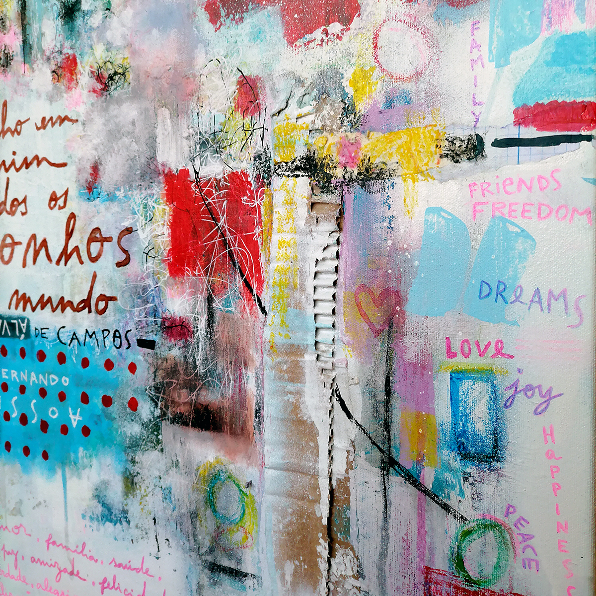 TELA SONHOS [ 46x55 cm ] 235,00 € Desconto de %. IVA incluído. Partilhar O produto encontra-se sem stock. Pintura original. Acrílico, aguarela, pastéis e colagem sobre tela. Formato 46x55 cm Inspirada em citação de Álvaro de Campos - F. Pessoa 2021. Original assinado e datado Tags telapinturasonhoFernando Pessoaálvaro de camposacrílicocolagempastéisaguarelaquadro Características